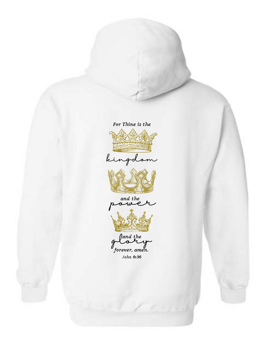 "For Thine is the Kingdom" The Lord's Prayer (John 8:36) KJV Hoodie - White