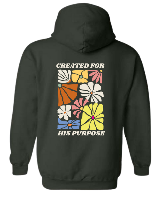 "Created for His Purpose" Isaiah 43:7 Hoodie - Forest Green